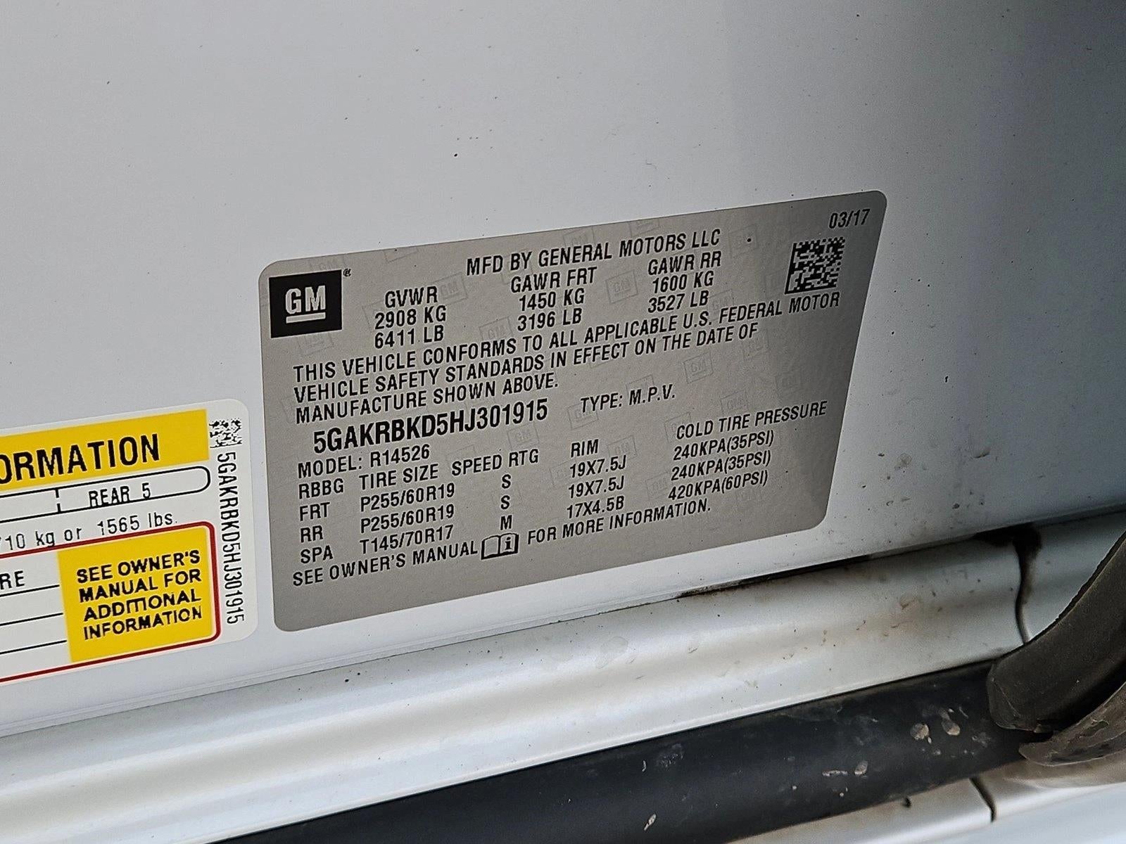 This outstanding example of a 2017 Buick Enclave Leather is offered by AutoNation Chevrolet. This Buick includes: ENGINE, 3.6L VARIABLE VALVE TIMING V6 WITH SIDI (SPARK IGNITION DIRECT INJECTION), DOHC V6 Cylinder Engine Gasoline Fuel *Note - For third party subscriptions or services, please contact the dealer for more information.* This SUV is a great example of beauty and brawn with classic styling and a workhorse power plant. Quality and prestige abound with this Buick Enclave Leather. You can tell this 2017 Buick Enclave has been pampered by the fact that it has less than 107,117mi and appears with a showroom shine. More information about the 2017 Buick Enclave: The Buick Enclave luxury crossover is packaged well, so that even as a mid-sized vehicle, it will seat up to eight passengers, which puts it up against larger SUVs. The Enclave borrows a lot from many of the luxury cars available from Buick, and it provides healthy competition for models from Lexus, Acura and Lincoln. With a state-of-the-art infotainment system capable of connecting to most modern devices and plenty of soft touch, high-quality interior materials, the Buick Enclave feels every bit the luxury vehicle. However, with available all-wheel-drive and better ground clearance than most minivans, the Enclave is surprisingly practical. Interesting features of this model are standard safety features, 3-row seating, spacious, luxurious interior, Available all-wheel drive, and quiet ride
